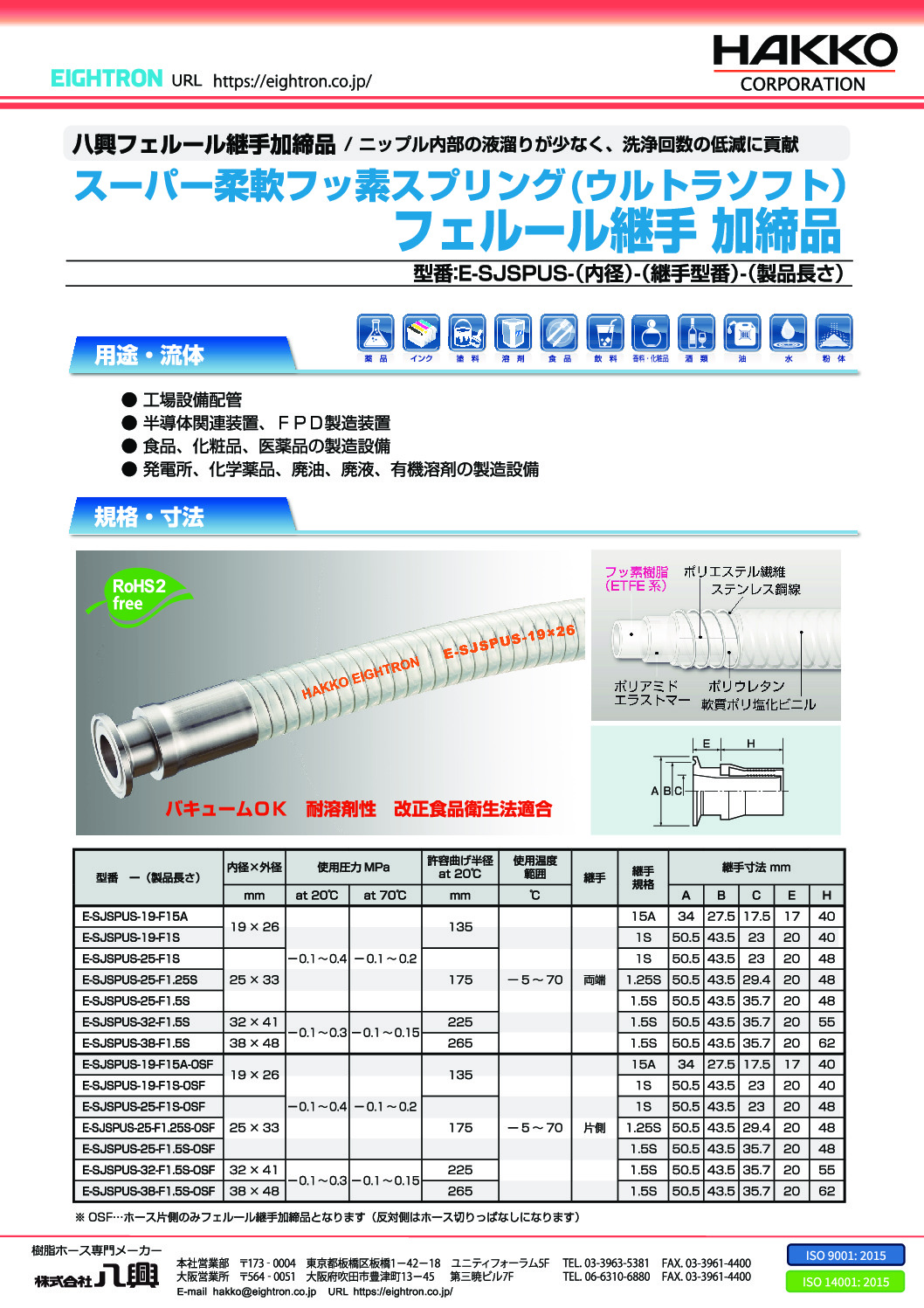 ※OSF…ホース片側のみフェルール継手加締品となります(反対側はホース切りっぱなしになります)