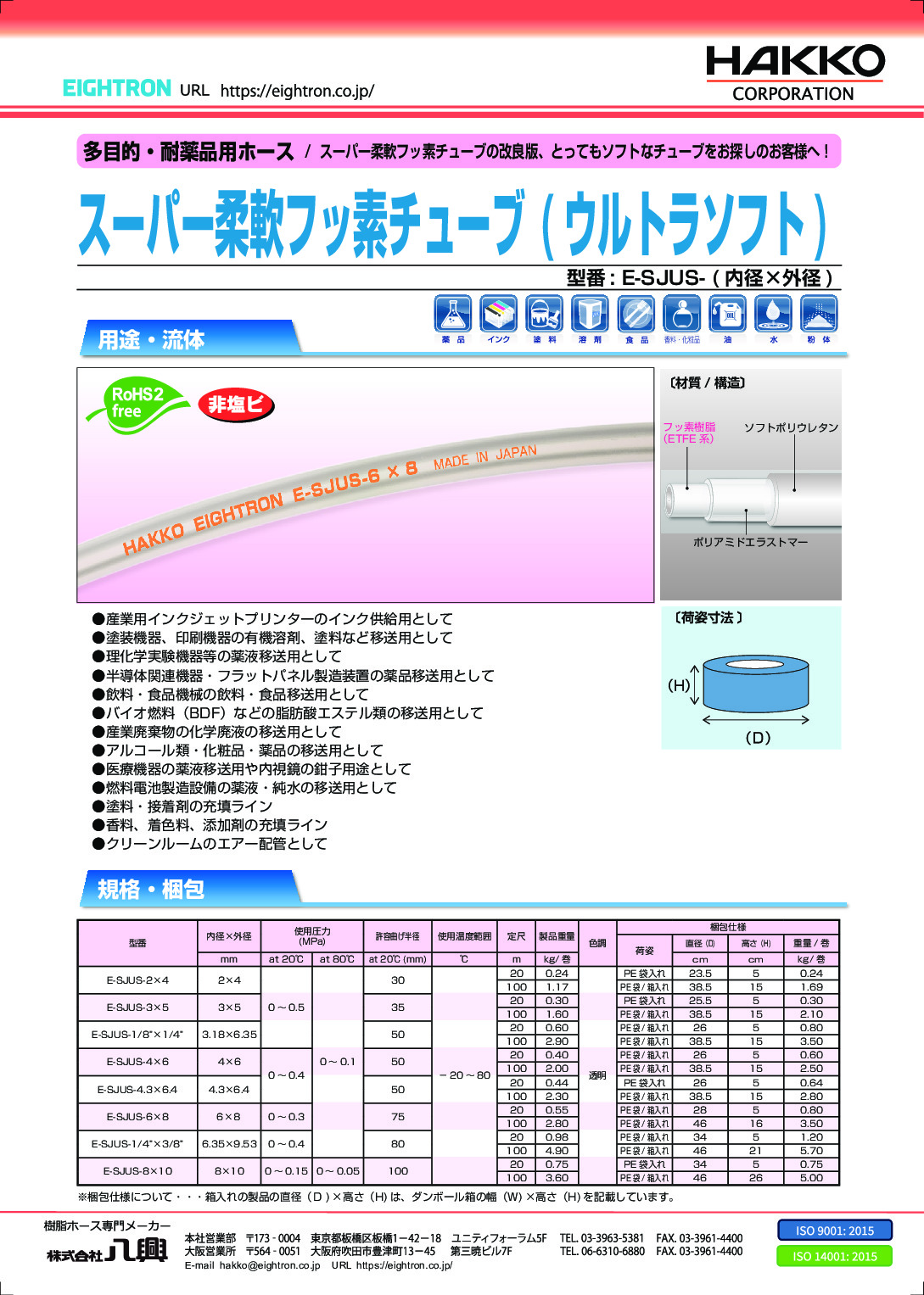 ・当製品は、E-SJ(スーパー柔軟フッ素チューブ)に比べ、内層肉薄品です。